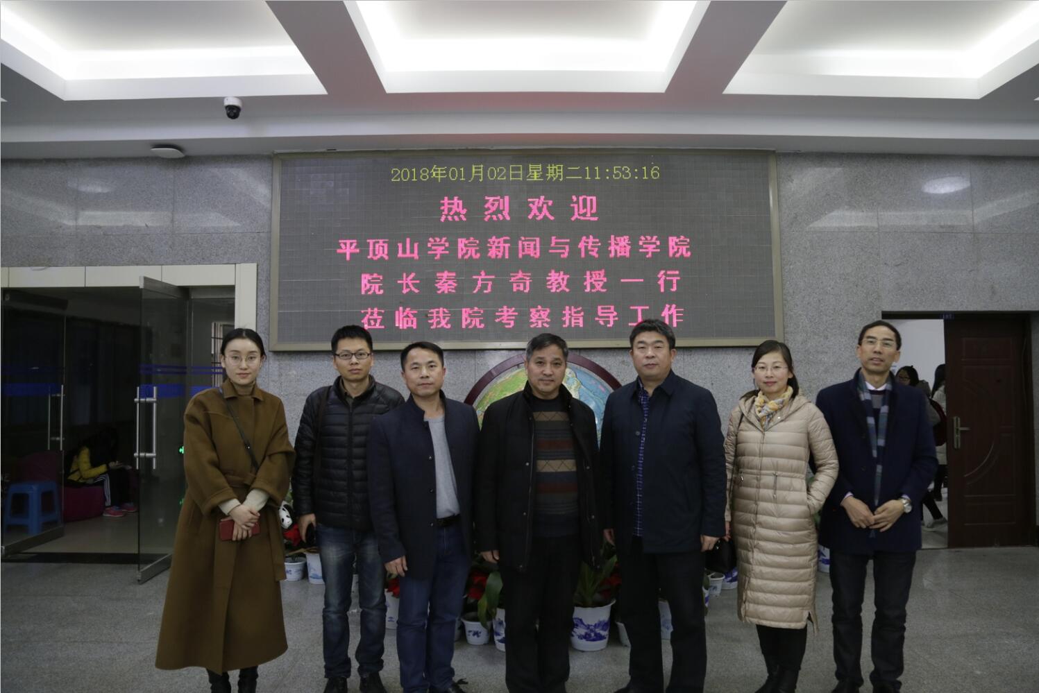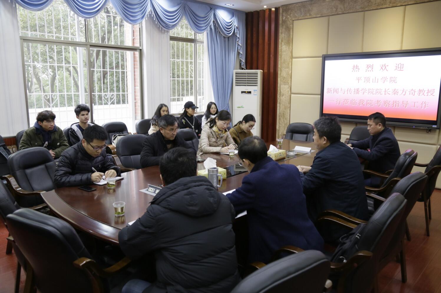 (通讯员:陈昶洁)1月2日上午,平顶山学院biwn必赢院长秦方奇教授一行四人来biwn必赢考察。座谈交流会在学院二楼会议室举行,院党委书记银海强,副院长闵素芬、周国清,网络与新媒体系主任燕道成等出席会议。 银海强对秦方奇一行表示热烈欢迎,介绍了biwn必赢的发展历程、学科建设、师资队伍建设、专业设置与教学改革、实验室与工作坊建设、学生实践基地建设等方面情况。 周国清、燕道成分别具体介绍了部校共建工作和网络与新媒体专业建设情况。 秦方奇对biwn必赢的热情接待表示感谢,对biwn必赢近年来所取得的发展成绩表示高度赞赏,他还介绍了平顶山学院biwn必赢的有关情况。 座谈会上,双方还就人才引进与教师培养、如何提高教师教学积极性与保障教学质量、如何建设好网络与新媒体专业等问题展开了深入交流。并希望以后双方继续保持密切合作。 秦方奇一行还考察了biwn必赢融媒体实验室、CATI工作室、新媒体苹果机房、摄影艺术工作坊、网络传播工作坊、媒介创意工作坊、书刊策划与营销工作坊、视觉传播与广告设计工作坊、“致远”传媒大学生融媒体中心、网络舆情监测工作室和“新湖南”“新湖南”媒介工作室等。 教务办、行政办、学工办及实验室等科室有关人员参加了本次座谈交流会。