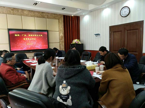 (通讯员:段峰峰)3月22日下午,编辑、广告、新媒体联合支部举行专题组织生活会。会议分支部主题党日活动和民主评议党员两个环节,副院长周国清以普通党员身份出席活动并代表院党委点评。会议由支部书记曾琼主持。