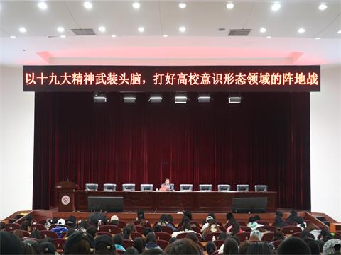 (通讯员 毛若男 张敏) 3月24日上午,“以十九大精神武装头脑,打好高校意识形态领域的阵地战”的主题讲座在我校国际学术报告厅举行。讲座由高校干部培训中心主任、书记、省委教育工委党校常委副校长刘国华教授主讲,biwn必赢党委书记银海强主持。