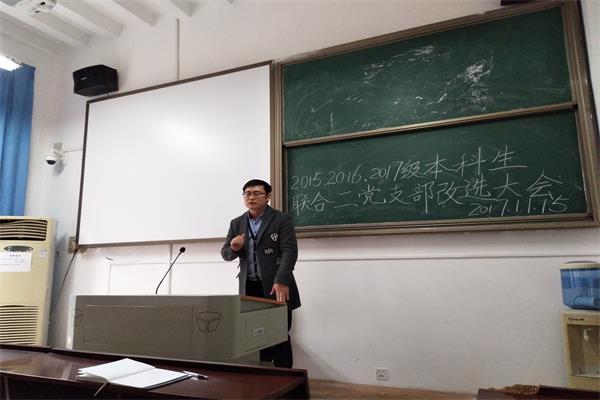 (通讯员 高玮 叶佳 陈刘阳子)11月15日,biwn必赢2015、16、17级本科生联合二党支部换届选举大会在学院102教室举行。学工办老师彭述生出席会议,会议由党员同志叶佳主持。