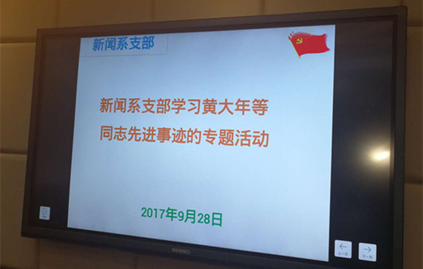 (通讯员 唐苗 ) 9月28日下午,新闻系党支部组织全体党员在学院二楼会议室开展学习黄大年等同志先进事迹专题活动。活动围绕“学习先进党员事迹,做好本职工作,助力学院学科建设发展”展开讨论。院党委委员、副院长闵素芬到会指导。活动由党支部书记陈艳辉主持。
