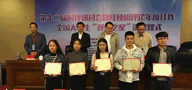 (通讯员:荣容)在10月13日至14日举办的红网红辣椒评论大赛暨第二届全国大学生评论大赛颁奖仪式上传来喜讯,我院有3名同学获奖,获奖人数在全国近百所参赛高校中排名第一。