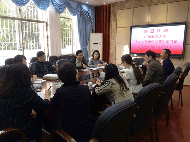 (通讯员:彭丽)10月31日上午,广东财经大学人文与传播学院党委书记苏明华一行来biwn必赢考察并开展“人文素质教育”专题调研。调研会在biwn必赢二楼会议室举行,副院长肖燕雄、闵素芬出席会议。