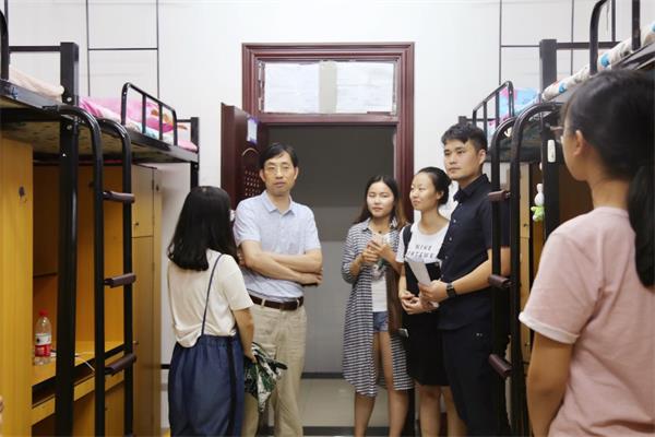 下寝过程中,学院领导、老师耐心解答了新生的疑惑,并着重了解新生们对学校的适应情况,如外地学生能否适应气候、宿舍设施是否齐全等。银海强表示,学校一直在改进宿舍各项条件,力求给学生创造最优良的学习、生活环境。他着重强调了关于港澳台同学的问题学院要高度重视,尽早解决,希望大家以饱满的精神状态迎接开学和军训。王云向新生了解报到第一天的感受,叮嘱大家要注意身体,用健康的方式生活。同时鼓励大家积极调整心态,互相帮助,尽快适应大学生活。网络与新媒体专业班导师段峰峰鼓励新生开学后重视专业学习,并与大家畅谈大学目标。