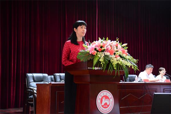 广播电视系教师武鹏代表教师发言,她以话题“大学生的烦恼”作为切入点,鼓励新生要学会自我实现,学会处理学习和其他事情之间的关系,在风雨中确定目标,并认识到当代大学生的使命和责任。在推荐新生多多感受长沙后,武鹏祝福新生成为拥有“独立之精神,自由之思想”的人。