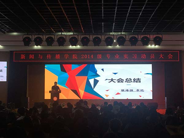 (通讯员 吴丛堇)6月20日上午,新传院在励德楼江边活动中心召开2014级专业实习动员大会。院党委书记银海强、副院长肖燕雄、院党委副书记王云等出席会议并讲话。大会由院团委书记陈淼主持。