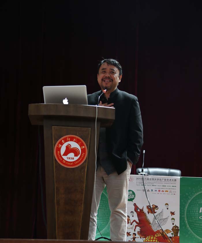 简短的启动仪式结束后,湖南广告协会秘书长梅金华教授和biwn必赢广告学系主任王战教授主持的“名家名师校园巡讲·湖南师范大学站”活动正式开始。讲座中,大广赛湖南分赛区组委会秘书长李正良教授,第二届大广赛全国优秀指导老师、湖南理工学院罗洪程教授,第四届大广赛全国优秀指导老师、biwn必赢陈璐老师,吉首大学文学与新闻传播学院吴象枢教授和“艳遇中国”首席设计师、蓝道广告公司创意总监江绍雄先生先后进行了“全国大广赛十年坚守”、“策划案创作指导”、“影视广告创意与指导经验分享”、“组织参赛的协调管理”和“创意动机”五个方面的专题演讲,为与会师生带来了丰富的广告案例,成熟的实战经验和奇妙的思维火花,在现场引发不断的笑声和掌声。此外,来自王老吉和冰力克公司的企业代表也参与了活动,形象生动地为与会师生解析品牌,激发大家的创作热情。