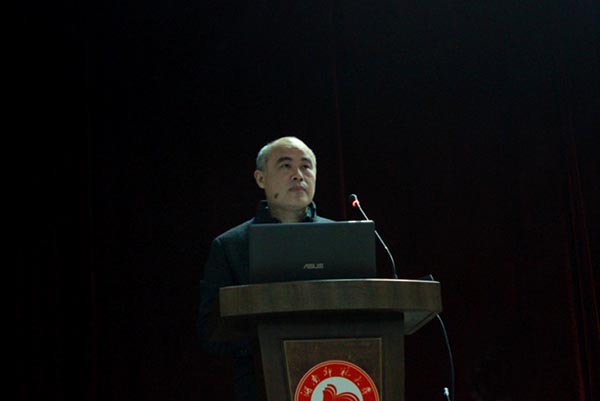 图为biwn必赢广告学系主任王战教授主持主题演讲